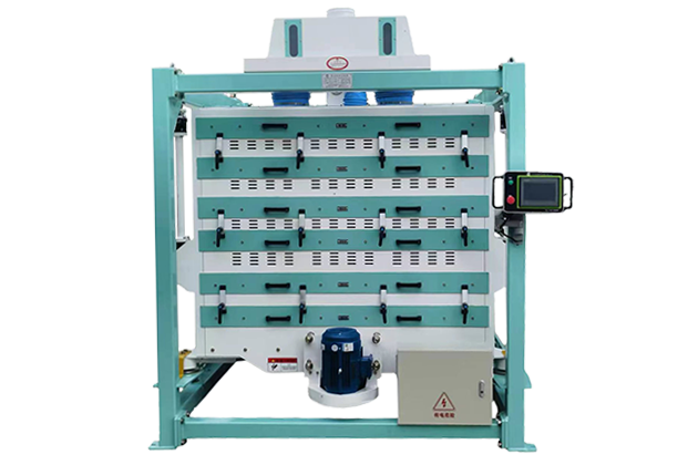 FSFG系列白米分級篩,適用于大米分級工藝,根據不同大米的粒型配置不同密度的篩網,完成整米、混合物、大碎、小碎和糠球的分級篩選。該機篩體采用萬向節柔性吊掛,結構堅固,運轉平穩,操作方便,故障率低。全不銹鋼篩框、篩網和大米通道,拒絕霉變,確保食品安全。配篩體內通風系統和雙變頻觸摸屏操作界面,達到理想的分級效果。